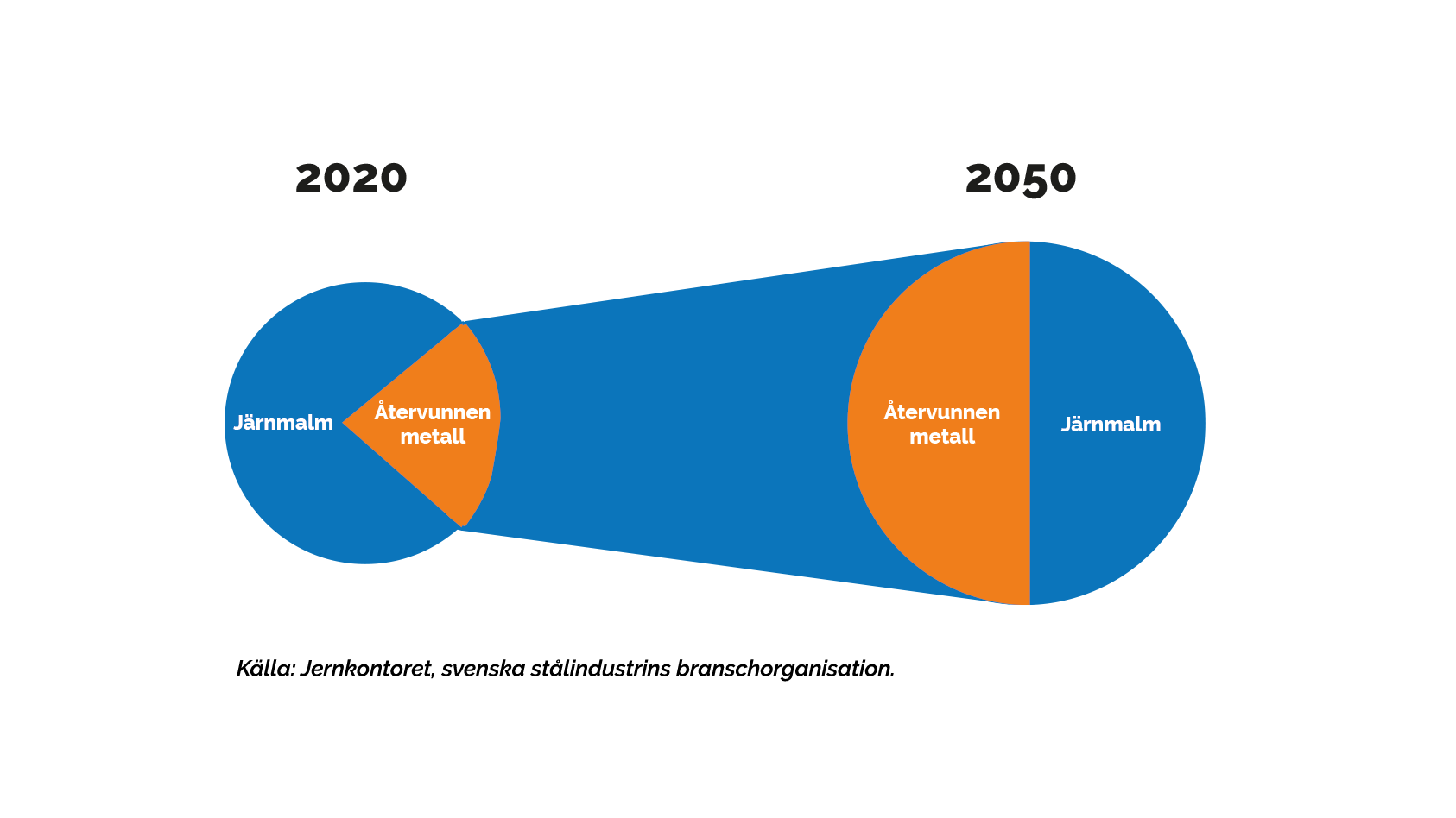 - 50 % av det stål som behövs förväntas komma från skrot år 2050.