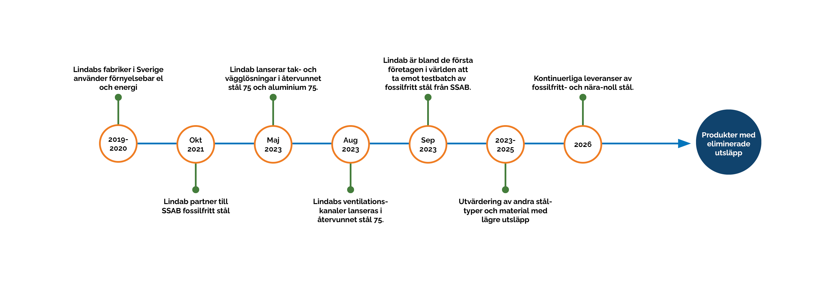 Lindab tar emot en mindre provleverans av detta material under 2023 för pilotprojekt och kommer från och med 2026 löpande erbjuda produkter i fossilfritt stål.