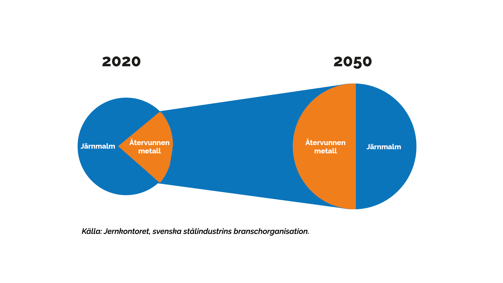 - 50 % av det stål som behövs förväntas komma från skrot år 2050.