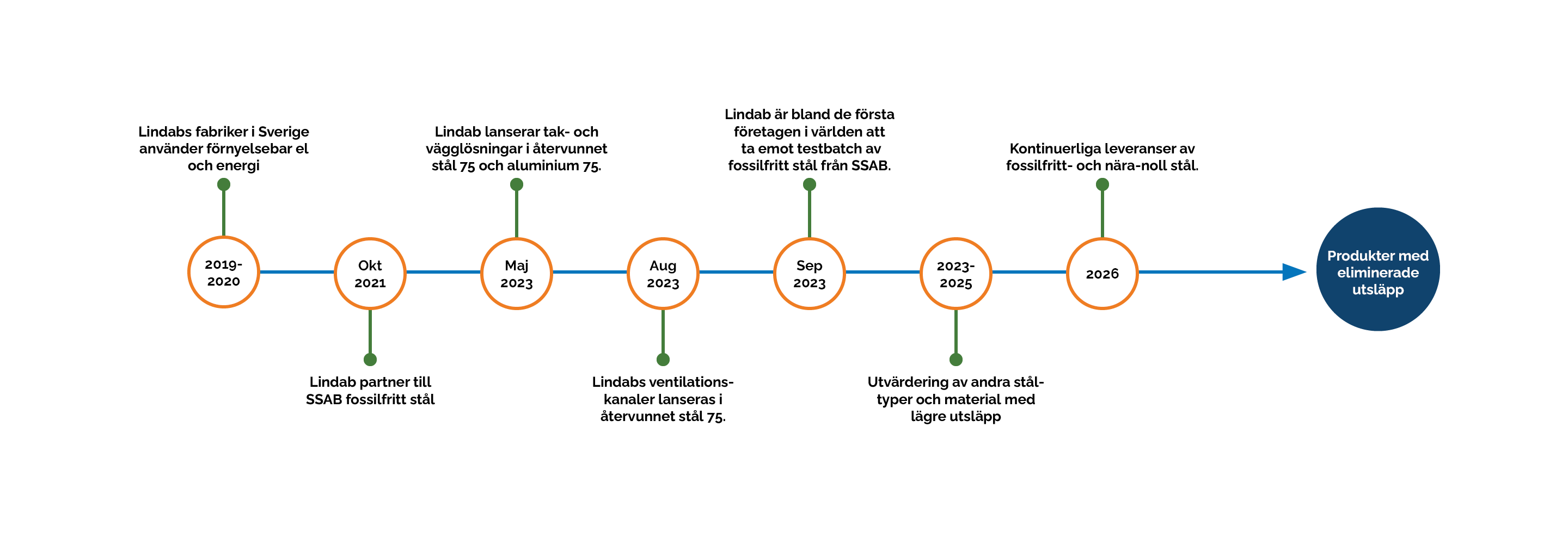 Lindab tar emot en mindre provleverans av detta material under 2023 för pilotprojekt och kommer från och med 2026 löpande erbjuda produkter i fossilfritt stål.