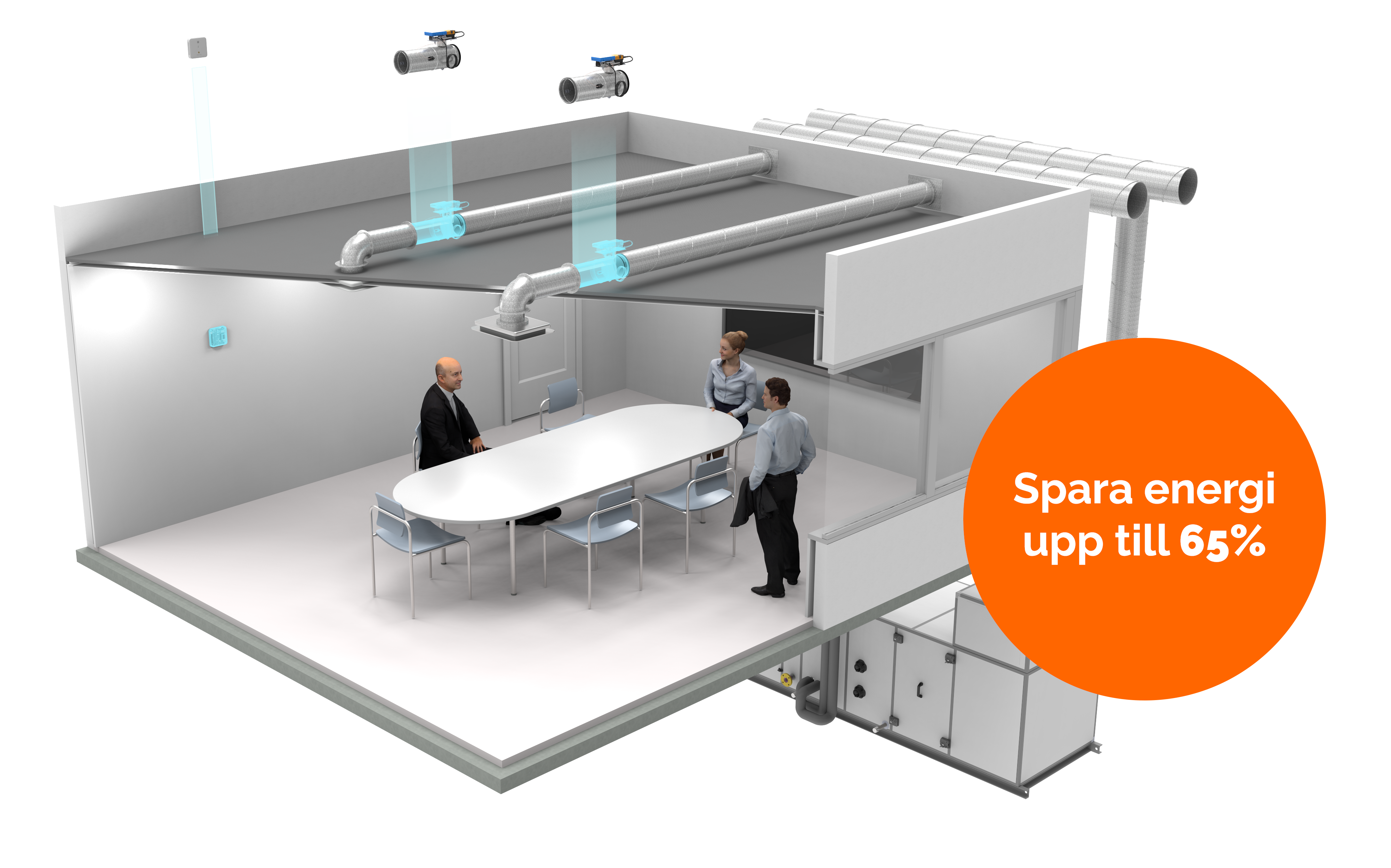 Uppgradera ett CAV-ventilationssystem till ett DCV-system rum för rum. Börja med att optimera de mest kostnadskrävande områdena, mät dina besparingar, den förbättrade arbetsprestationen och den övergripande komforten, samt den förbättrade luftkvalitén.