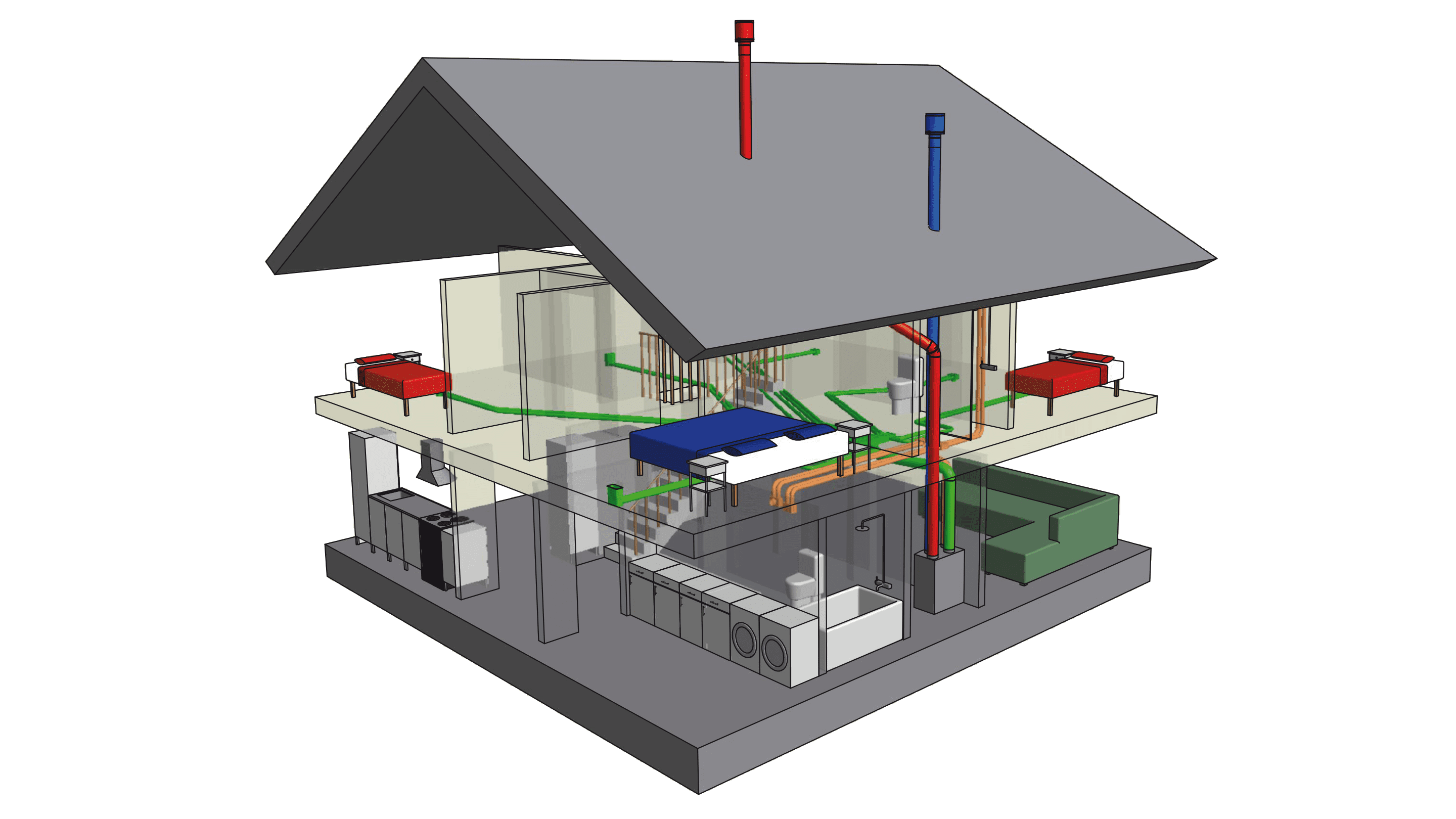 Ventilationslösningen InDomo är ett komplett kanalsystem som är utformat för integration i hemmets konstruktion. InDomo kan användas i flervåningshus, radhus och som villaventilation i fristående hus.