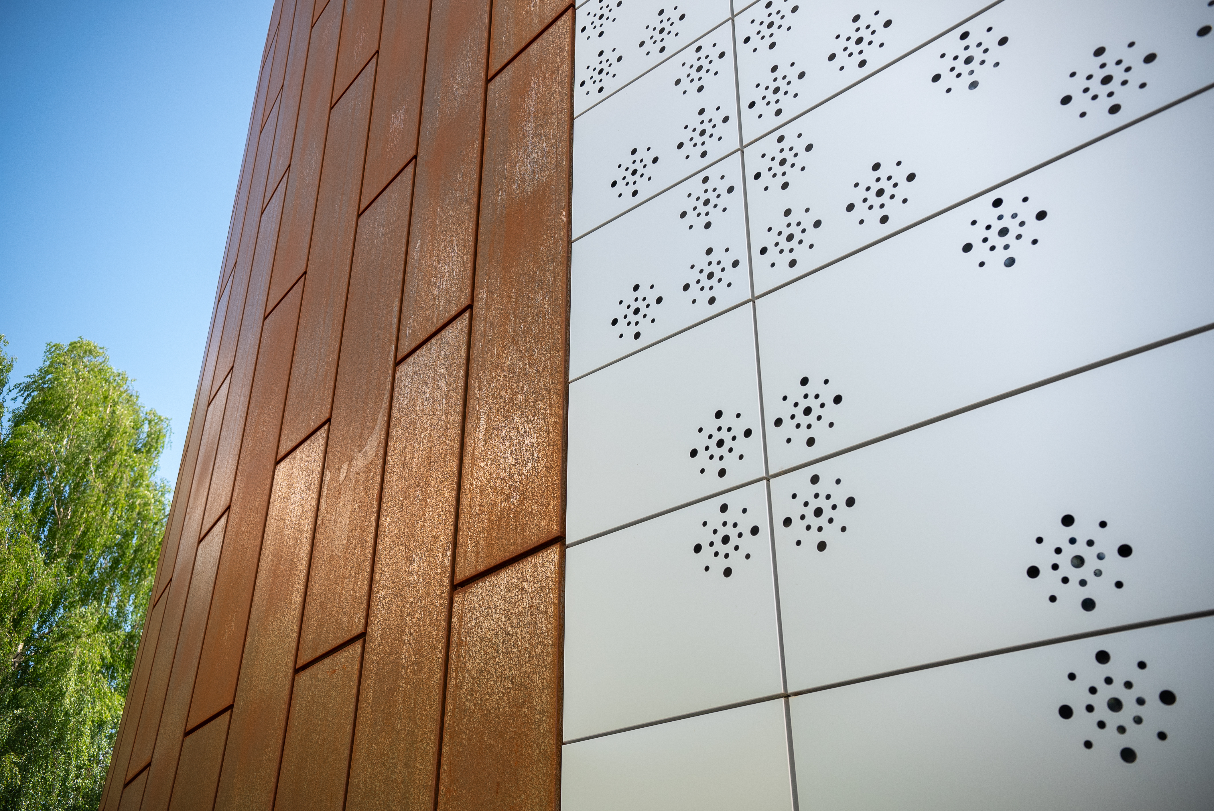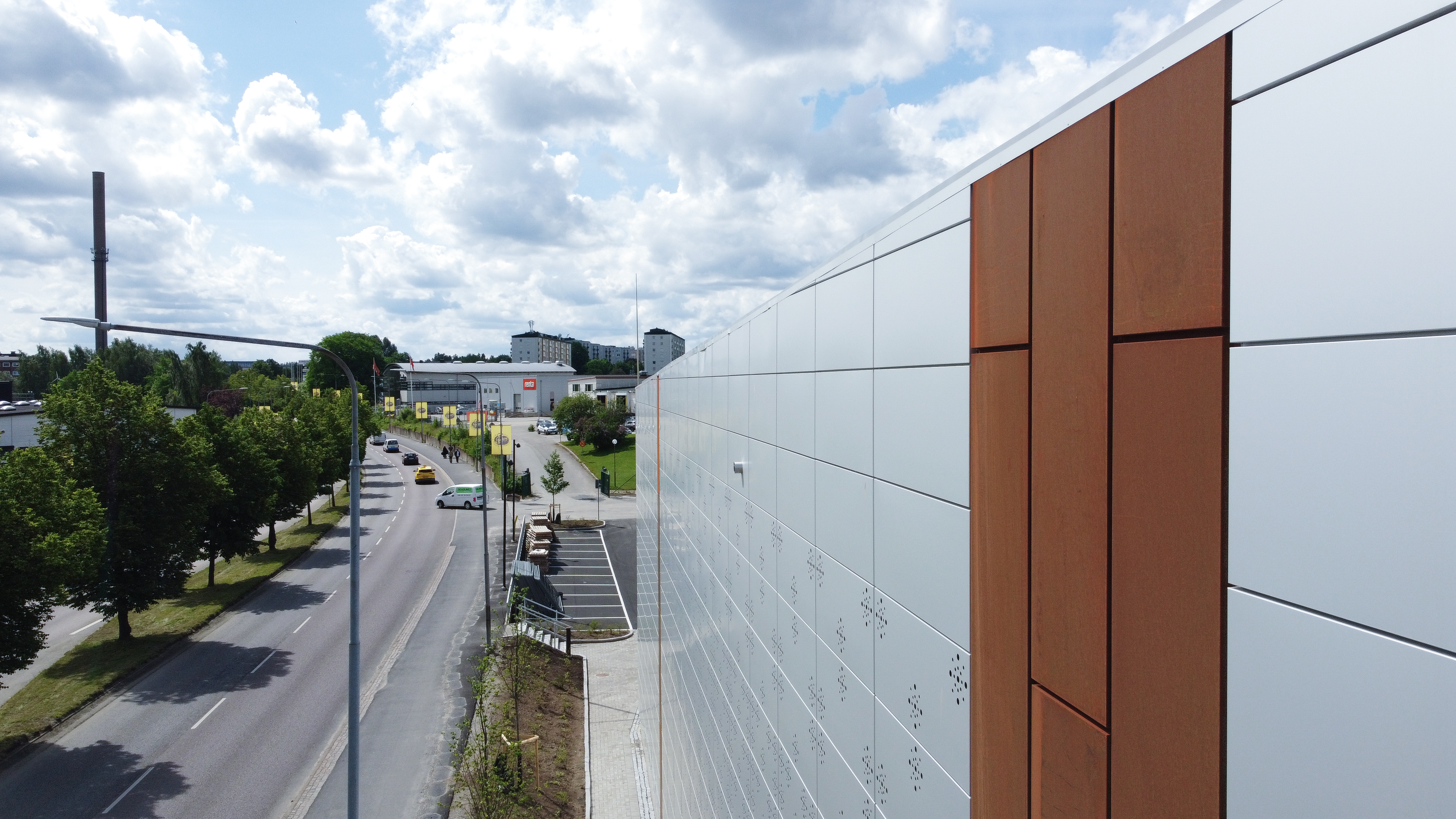 Som arkitekt i 35 år har Lena Sundén hunnit skapa ett flertal ishallar tidigare, men det här uppdraget var speciellt och för att lösa uppgiften valde arkitekterna material noga. "Plåt kändes som ett naturligt och bra val. Det är ett väldigt användbart material som är beständigt, underhållsfritt och håller över tid. Vi såg stora möjligheter att göra något fint, speciellt när vi kunde klä och dekorera utsidan av fasaden", säger arkitekten Sofie Jönsson.