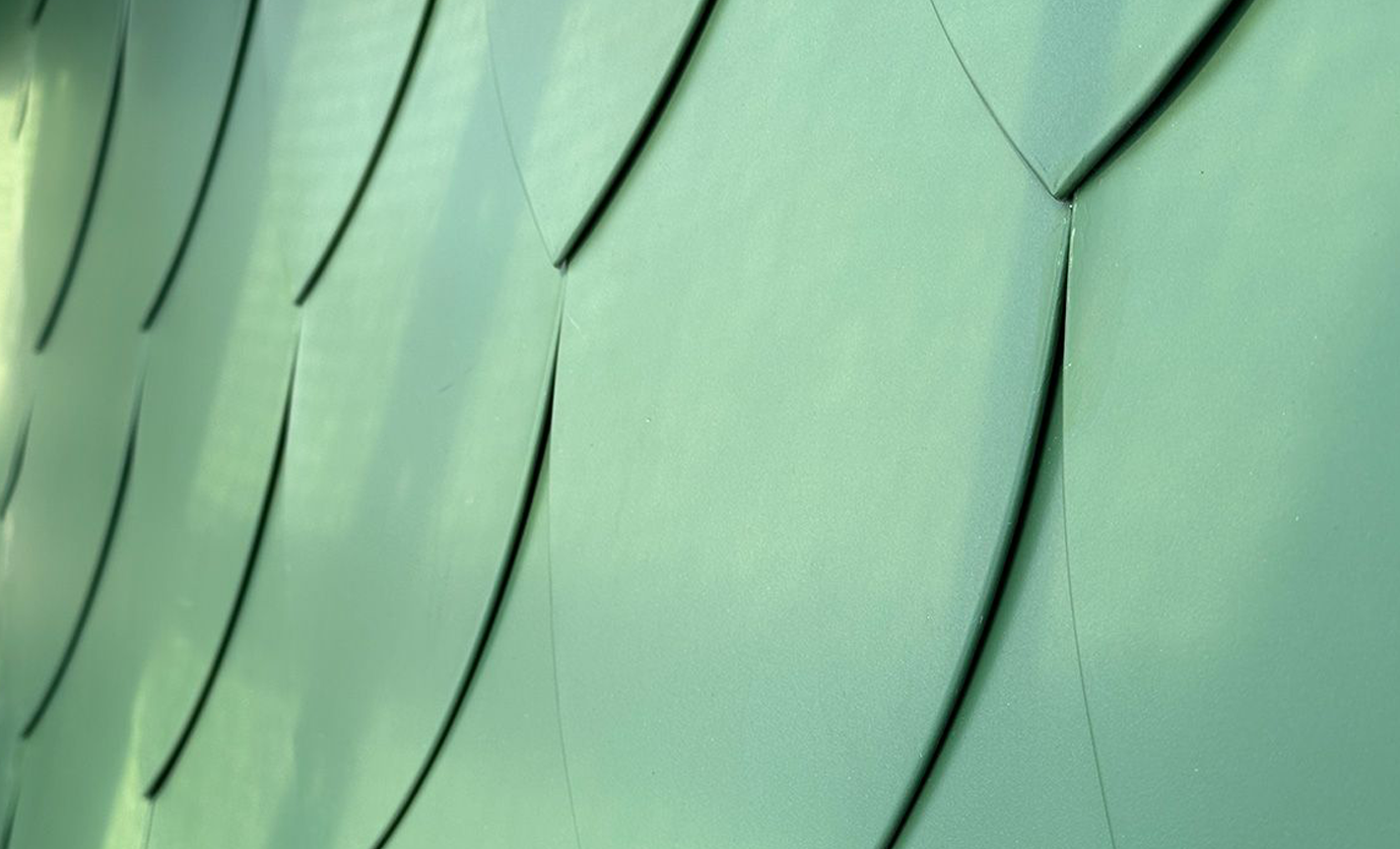 13 olika bladstorlekar skars, pressades och formades för hand med GreenCoat PLX färgbelagt stål. GreenCoat PLX valdes för sin höga kvalitet, utmärkta formbarhet och hållbarhet, tack vare användningen av svensk rapsolja i beläggningen. På grund av det hårda klimatet krävdes ett högkvalitativt material som kan motstå snö, vind, regn och is.