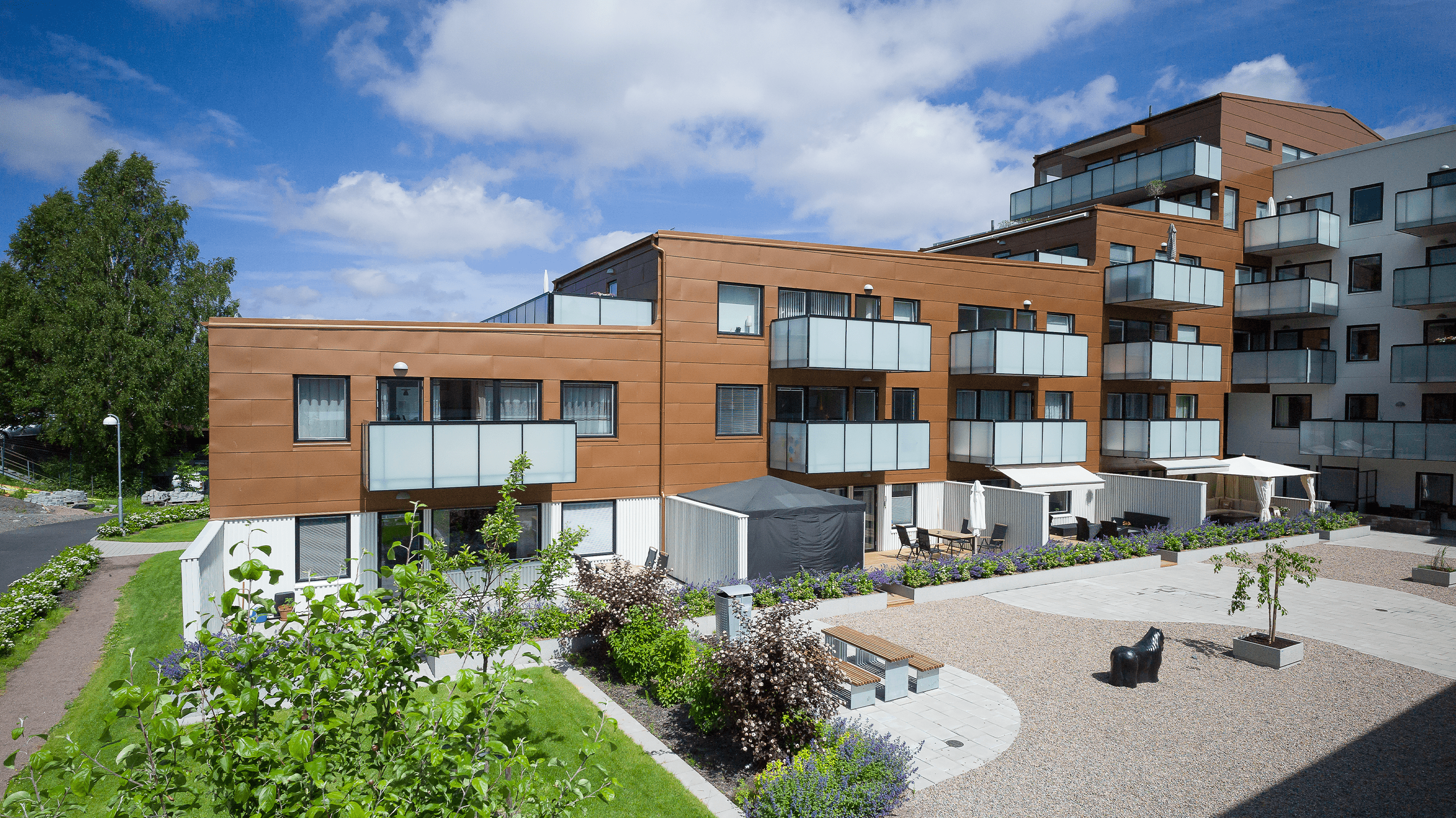 ”Genom Lindab Kopparmetallic och Kode Plåts hantverkskunnande har vi skapat ett arkitektoniskt uttryck som verkligen förbinder dessa två ”världar” på ett riktigt bra sätt.”