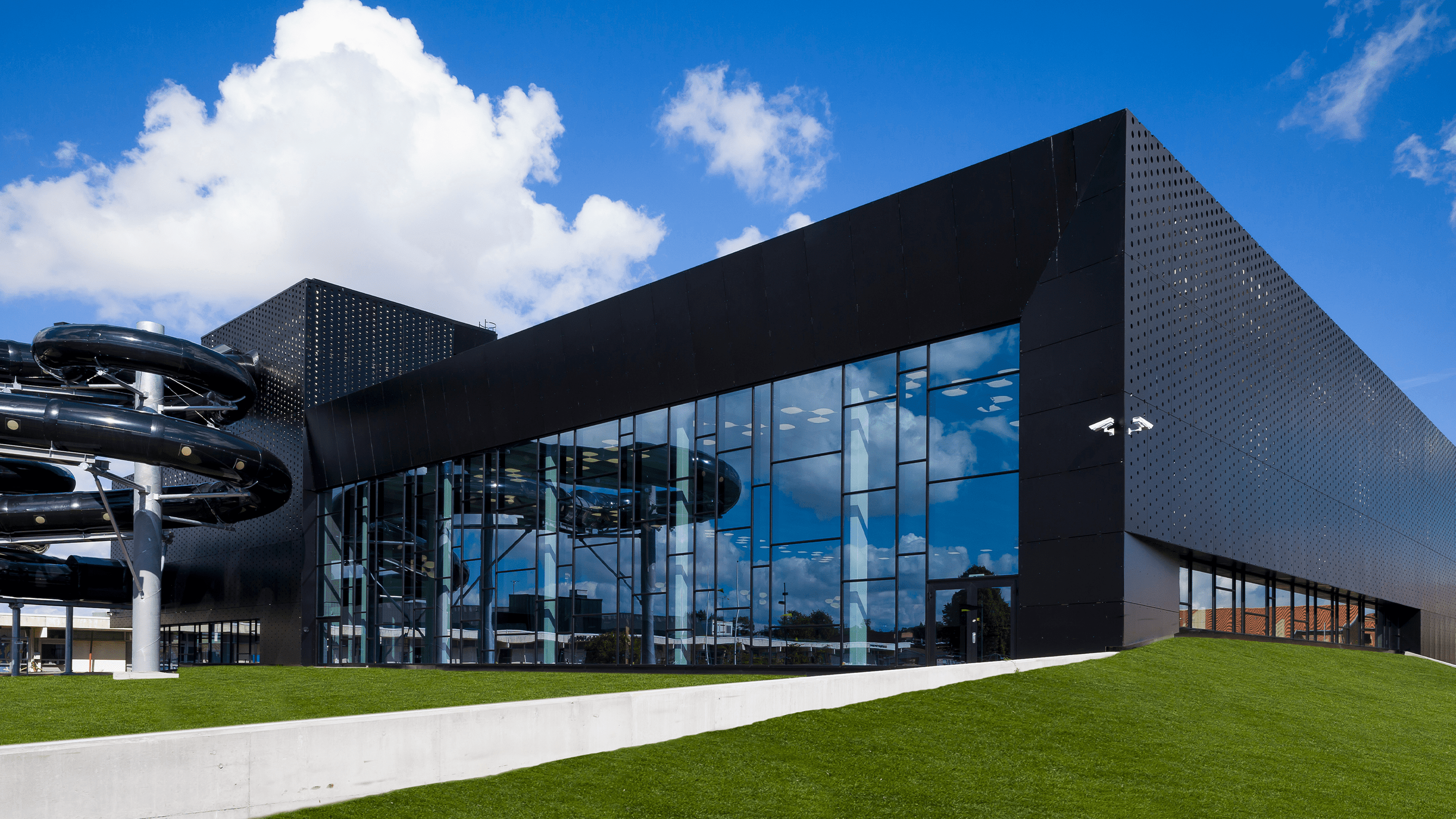 När Ystads nya badhus slog upp sina portar sommaren 2014, så kunde de bland annat stoltsera med en helt unik fasad. Den danska arkitektbyrån Henning Larsen hade i samarbete med teknikkonsulten Sweco valt att klä hela betongkonstruktionen med en ”svävande”, bakombelyst fasad i eloxerad aluminium.