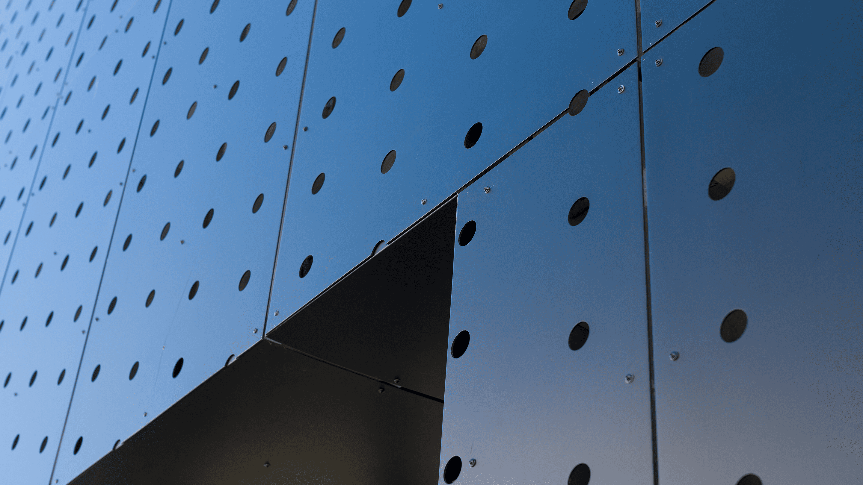 Totalt sett handlar det om en fasadyta på knappt 3 000 m2. Samtliga aluminiumplåtar består av en speciell legering anpassad för att uppnå bästa möjliga kulörsäkerhet och jämnhet i eloxeringen. Eftersom hela fasadkonstruktionen är i korrosionsklass C4 så är också all infästningsskruv med bland annat Marutex i klass C4.
