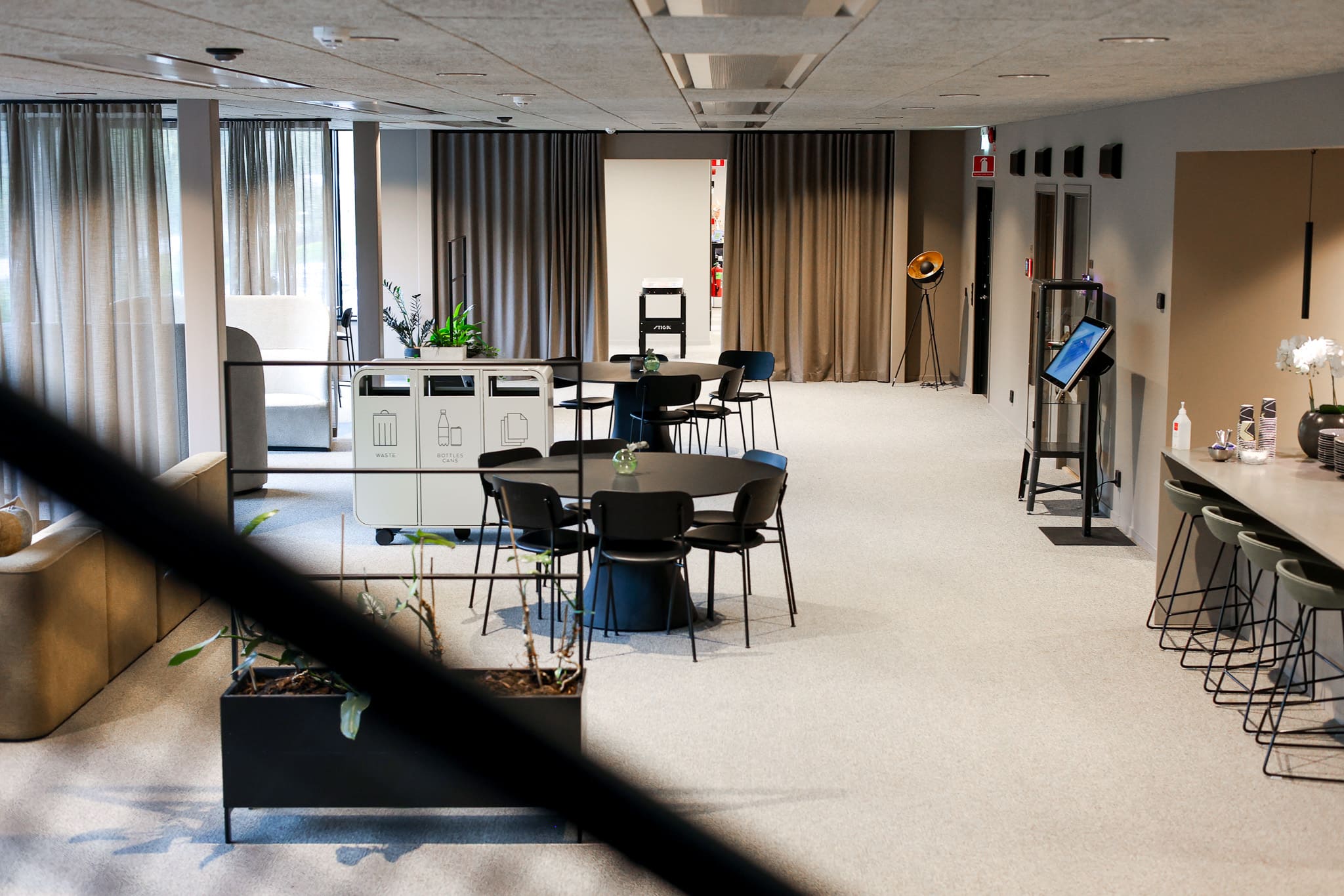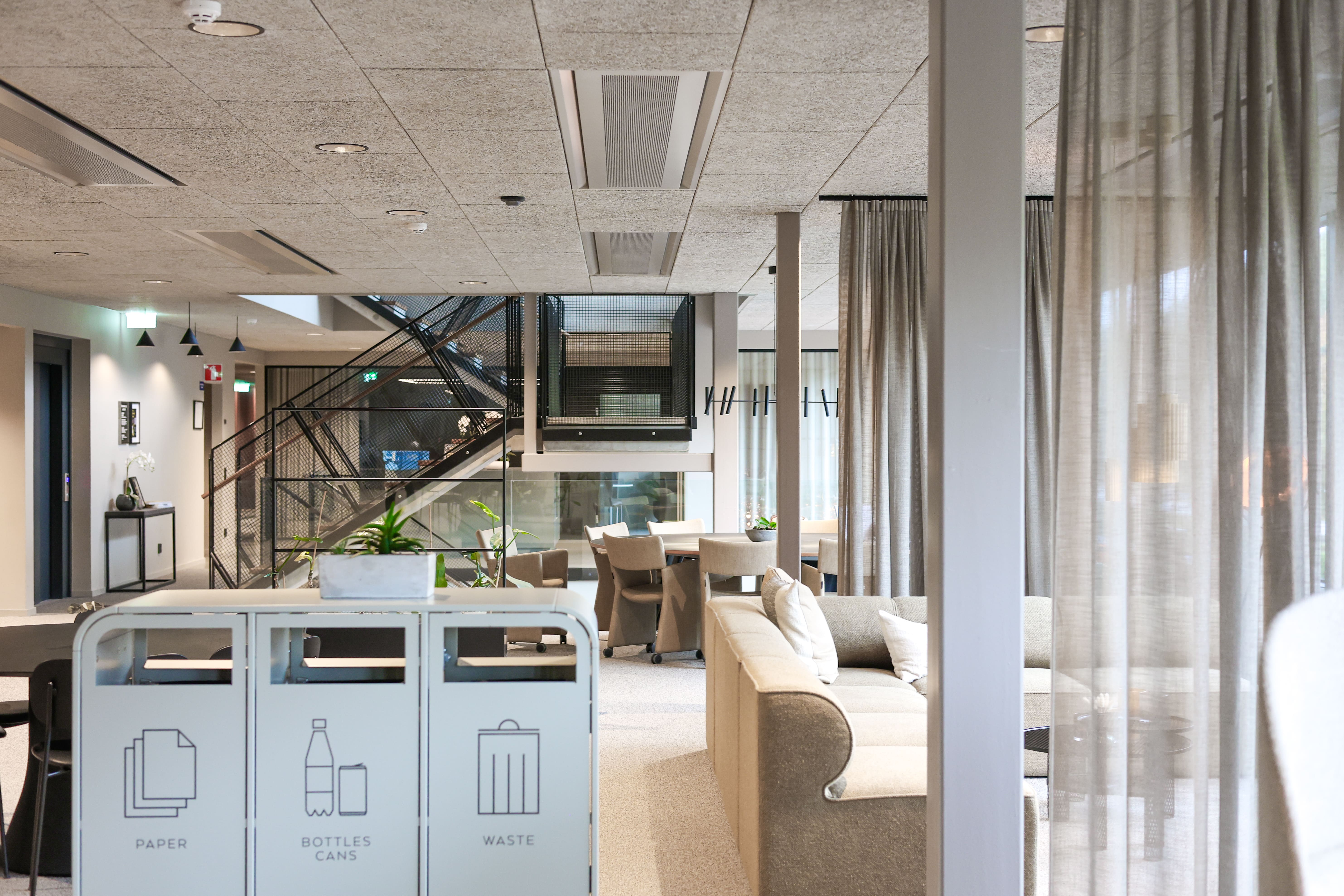 Med de stora fönsterfasaderna på kontorsbyggnaden och det höga flödet av människor som kontinuerligt rör sig in och ut, varierar värme- och kylbehovet i olika delar av byggnaden. Det blev därför extra viktigt med en lösning som effektivt kan hantera både kylning och uppvärmning. Solus är ett kylbaffelsystem som utjämnar temperaturen genom att återanvända värmeenergin i byggnadens vattenkrets. Systemet flyttar energi från kylda rum till varma, baserat på aktuellt behov. Genom att blanda returvattnet från olika zoner i byggnaden kan det tempererade vattnet cirkuleras vidare, vilket möjliggörs genom att alla bafflar är kopplade till samma vattenkrets.