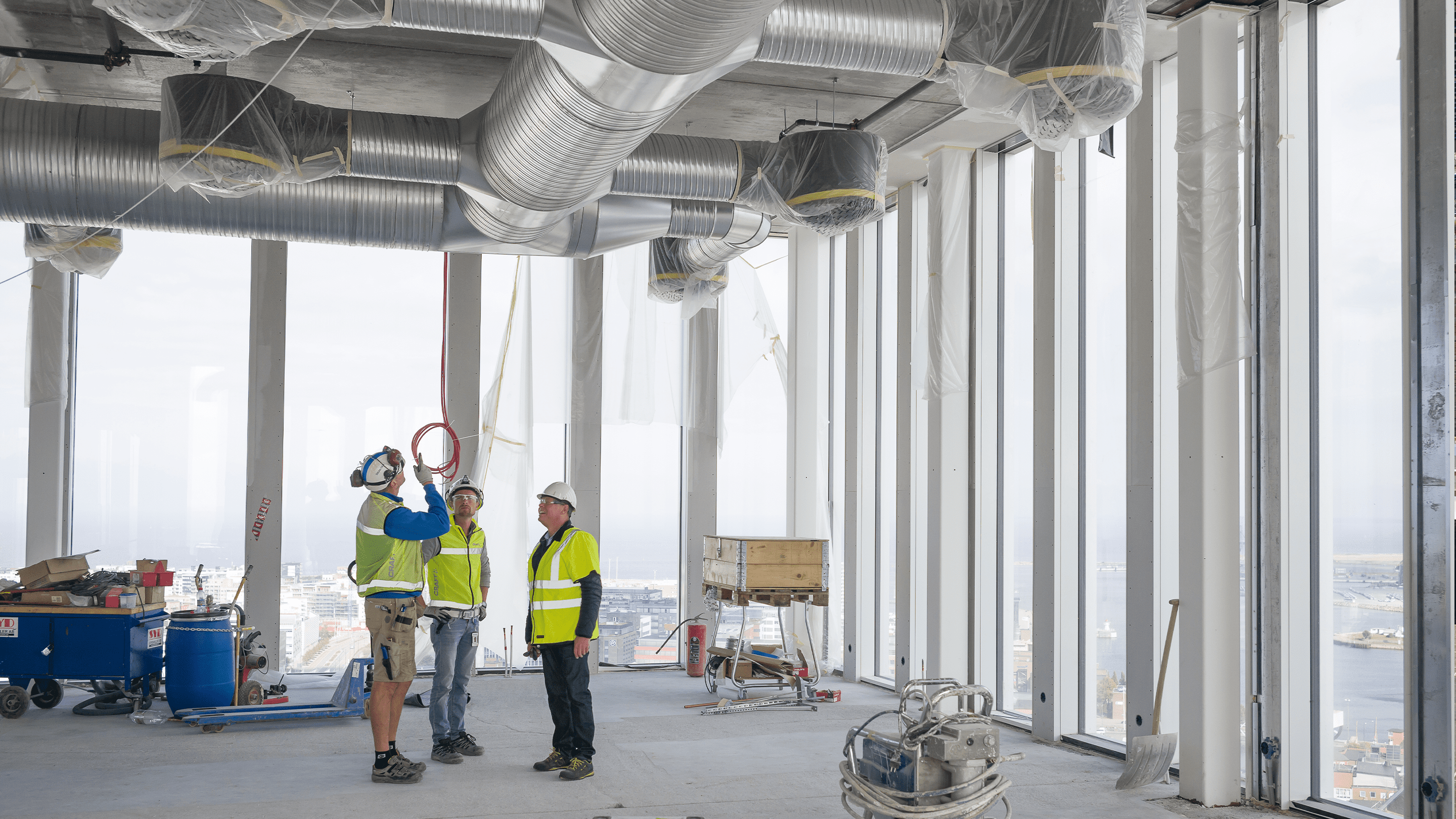 ”Vi har jobbat med installationerna sedan maj 2013 och fått mer än en full lastbil i veckan från Lindab. Detta säger ju också en del om omfattningen, men framför allt om Lindabs leveranssäkerhet. Inte en enda leverans av dessa drygt 100 fabriksleveranser har missats – allt har kommit precis som utlovat. Jo, vid ett tillfälle så fick vi vänta, men det var stormen Svens fel, en trist historia som stängde ned hela bygget,” säger Magnus Paulsson, ledande montör på Skanska Inneklimat.