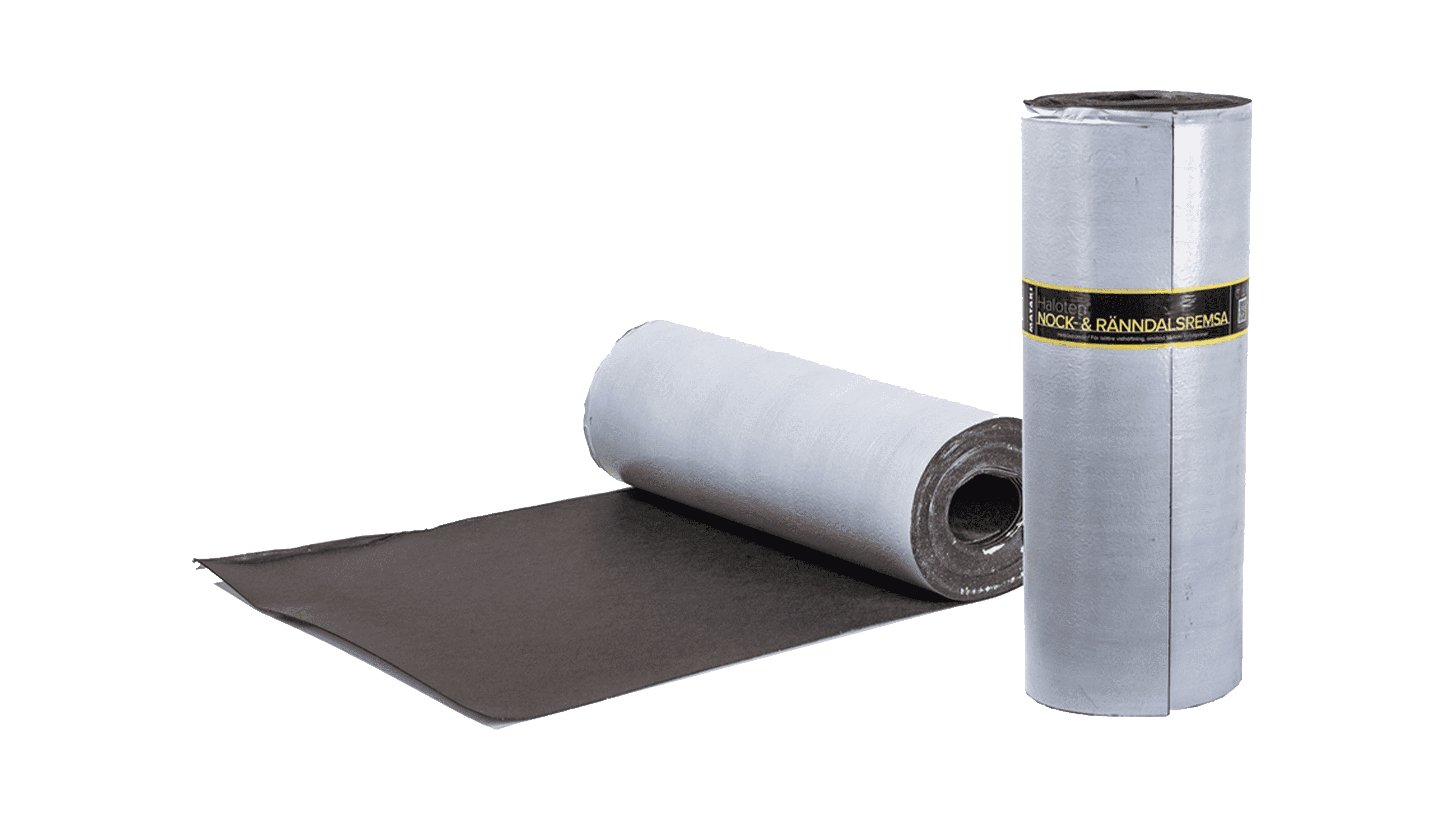 Haloten Nock- & Ränndalsremsa används för att täta nock och ränndalar vid underlagstäckning med Haloten 380, Haloten STEEL och Haloten 280. Vid dolt montage av underlagstäckningen t.ex. vid bandtäckning hjälper denna remsa till att behålla infästningen dold av underlagstäckningen.