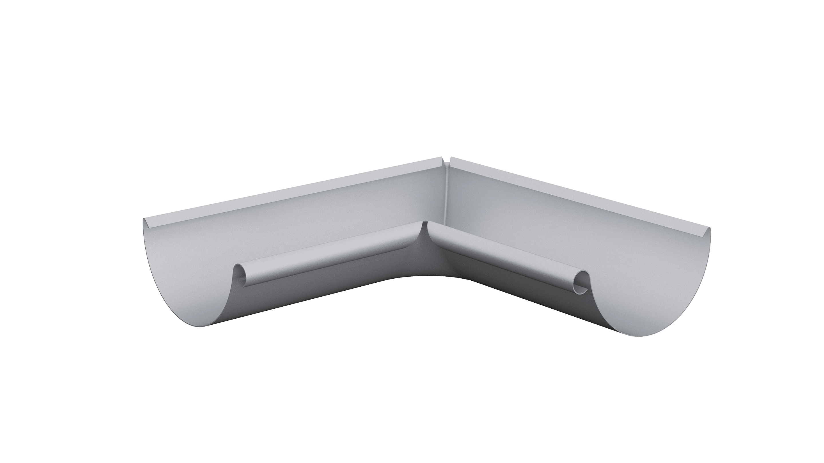 Rännvinkel för halvrund ränna i 90 eller 135 grader. Kan tillverkas enligt specifika önskemål. Denna produkt är tillverkad av färgbelagd galvaniserat stål i 0,6 mm tjocklek.