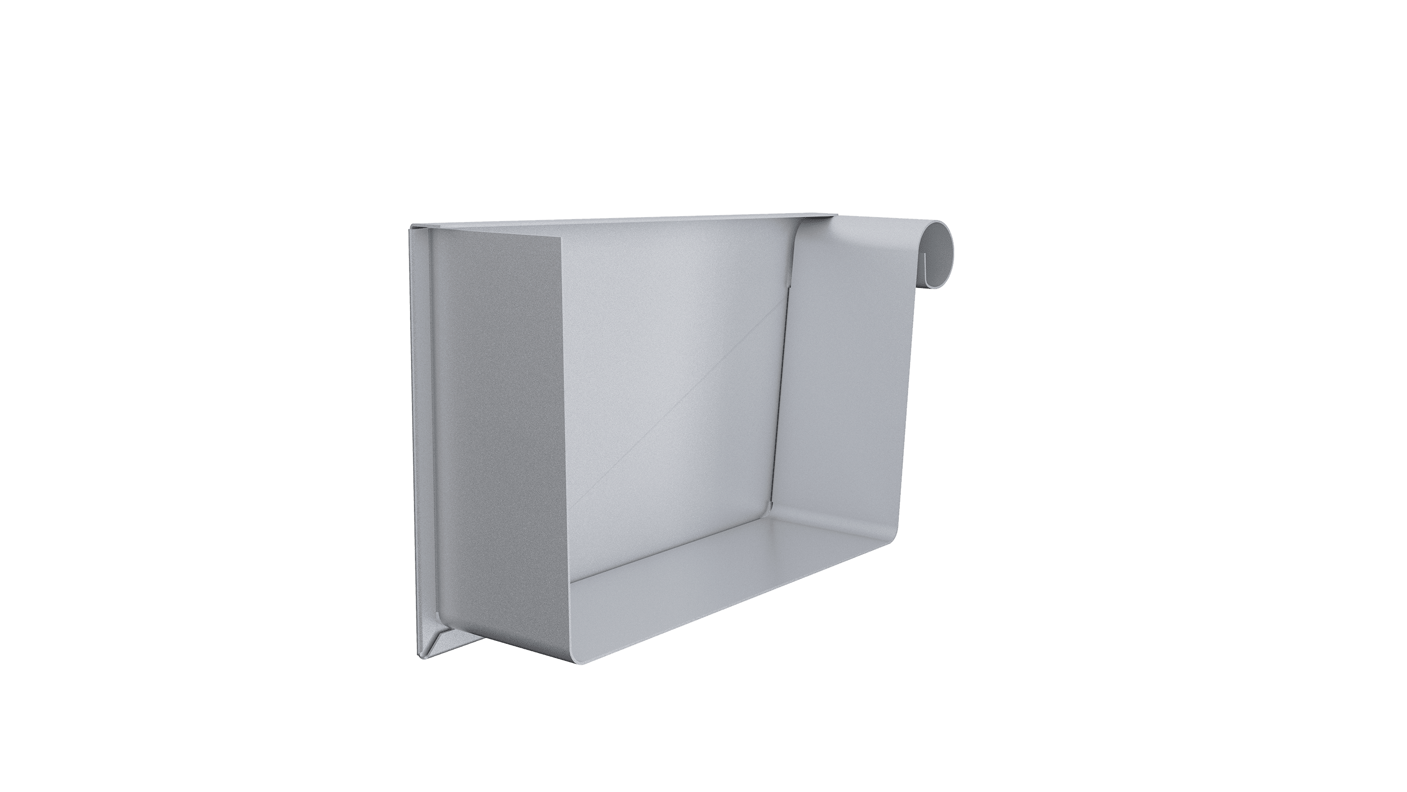 Rektangulär ränngavel för montage till höger. Gaveln vänds i rännan och montaget tätas med silikon.