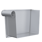 Rektangulär ränngavel för montage till vänster. Gaveln vänds i rännan och montaget tätas med silikon.