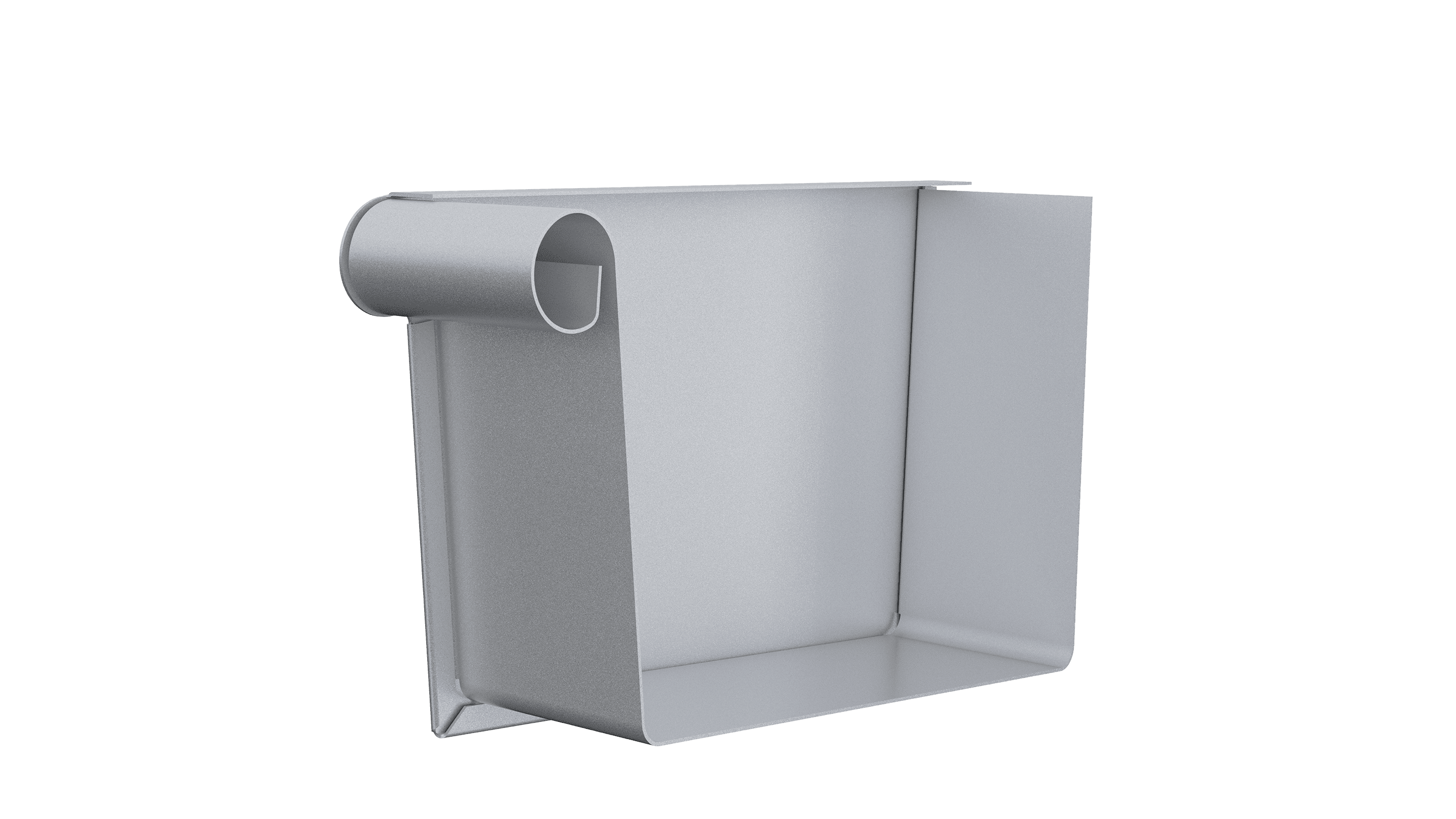 Rektangulär ränngavel för montage till vänster. Gaveln vänds i rännan och montaget tätas med silikon.
