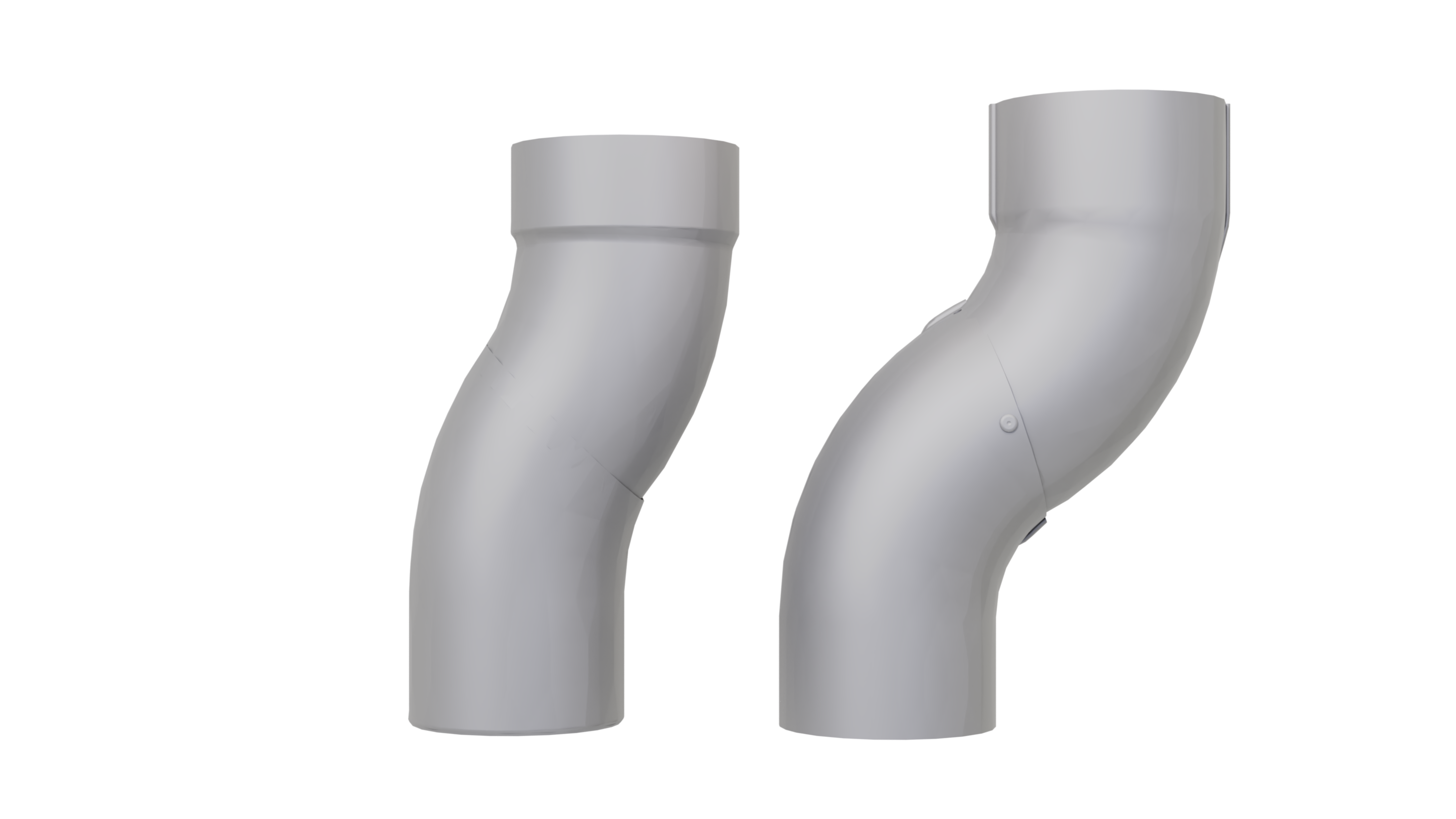 En böj i ett stycke för att förenkla konstruktionen när markanslutningsröret är längre ut från husets vägg än stupröret.