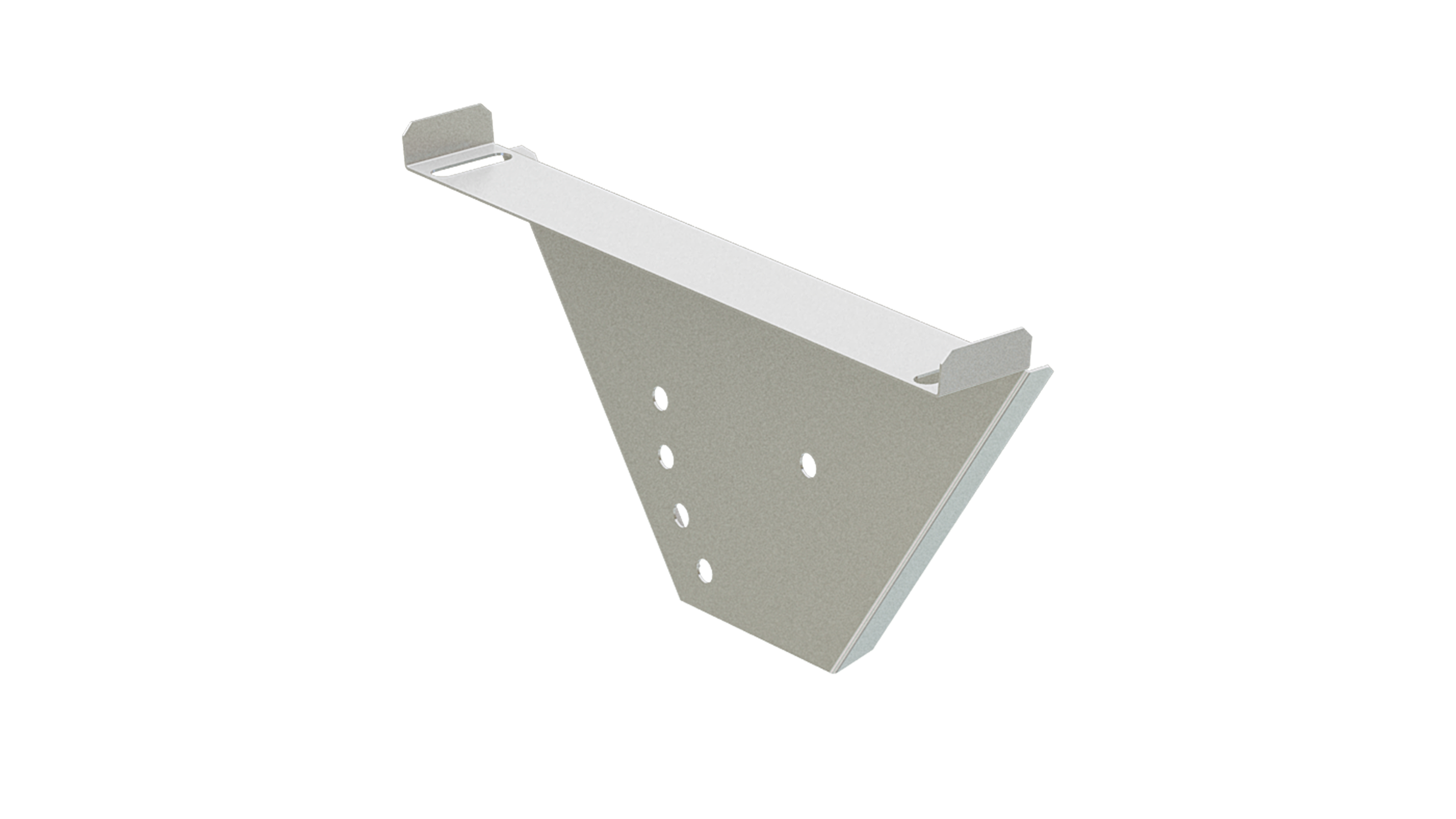 Övre konsol för montage av gångbrygga. Monteras tillsammans med de undre konsolerna KOBET eller KOTEG för att bilda en komplett bryggkonsol. Genom hålmönstret kan bryggans vinkel varieras för taklutningarna 15˚, 20˚, 25˚, 30˚, 35˚, 40˚ och 45˚.