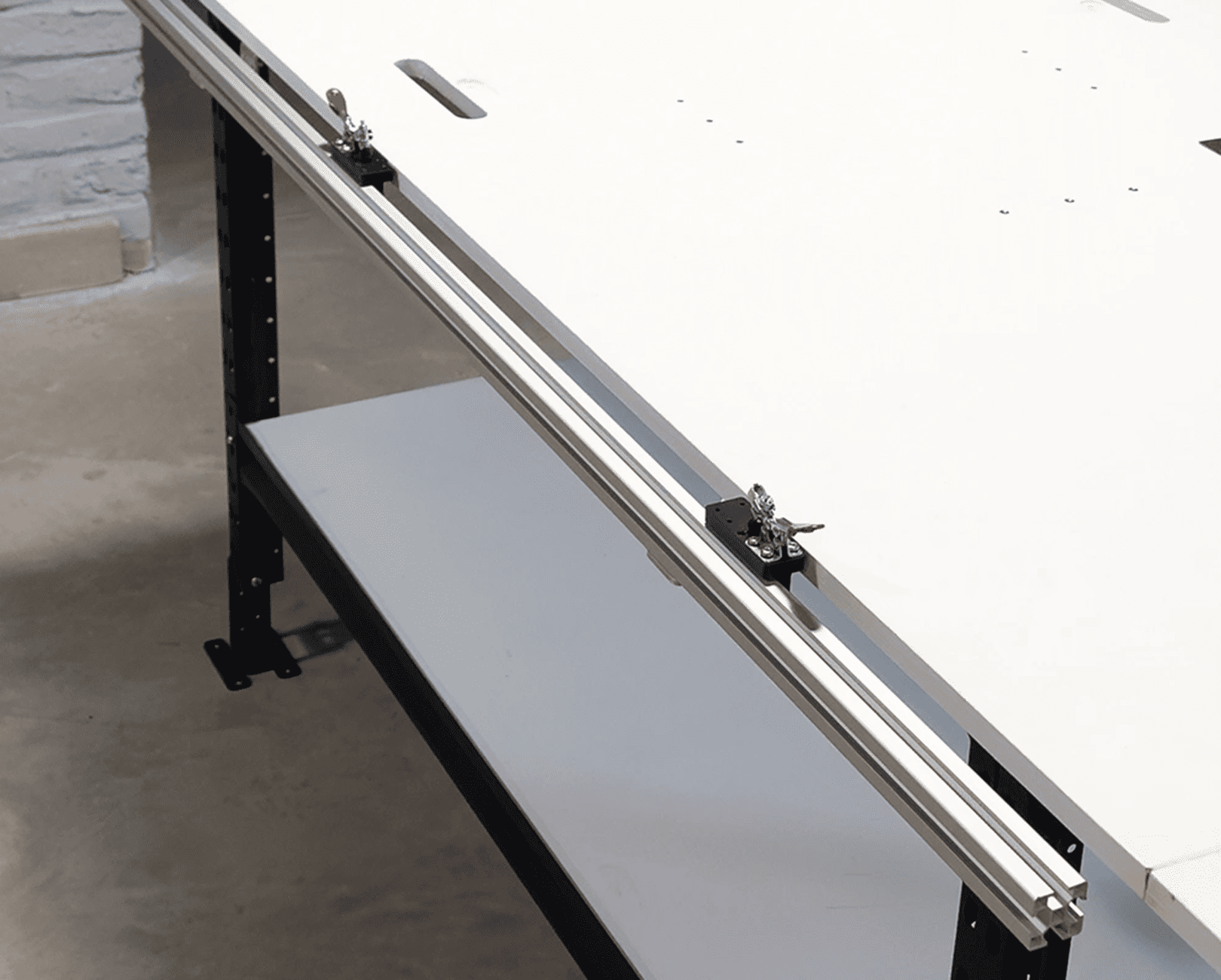 Denna robusta monteringsskena är designad för att fästas direkt på arbetsbordet och används tillsammans med RollCutter-verktyget. Med två medföljande snabbspännare som löper i skenan kan du enkelt justera efter plåtens storlek. Fästen för bordmontering ingår, vilket ger stabilitet och säkerhet vid arbete.