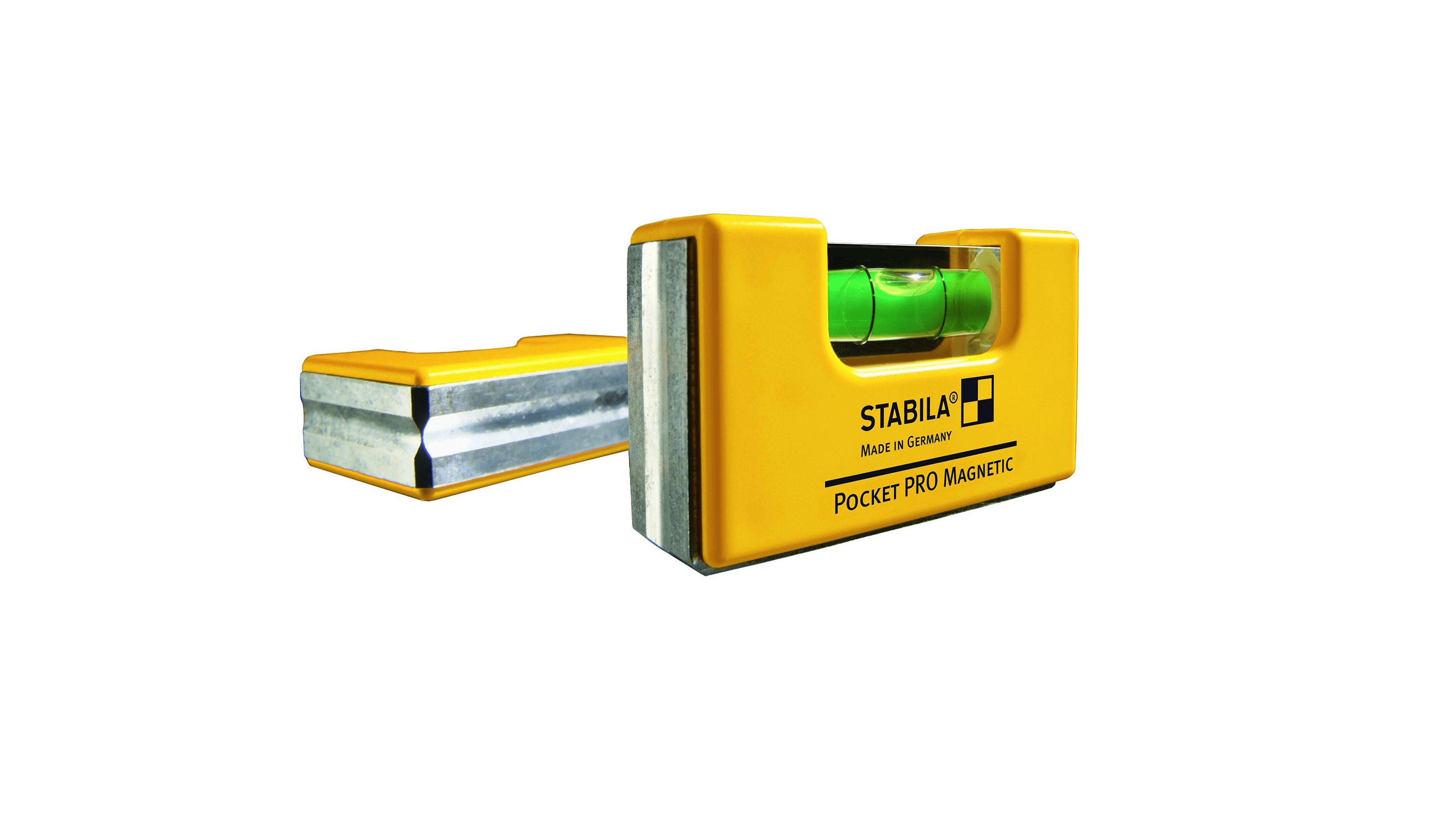 Stabilas magnetiska lilla fickvattenpass Professional (6,7x4,1 cm) med aluminiumprofil på ena lång och kortsidan lämpar sig för all typ mindre avvägning - även på rör då aluminiumprofilen är fräst i U-form. Fickpasset sitter i ett metallclipsförsett plasthölster med klicklås som gör det lätt åtkomligt i bältet eller på fickan. Passet är litet, pålitligt, smidigt och lätt samt försett med extra kraftiga jordmagneter på båda de aluminiumbeklädda sidorna. Fastsättning och nivellering av den okrossbara libellen i den mjukt rundade ABS/nylon/aluminiumprofilen sker elektroniskt. Libellen fixeras genom att krympfri konstharts pressas in och åstadkommer en livslång spänningsfri och orubblig förbindelse som ger en oöverträffad beständig noggrannhet. (Patenterat) Libellens utformning möjliggör även avläsning runt om. 1 våglibell med en noggrannhet på 1,0 mm/m.