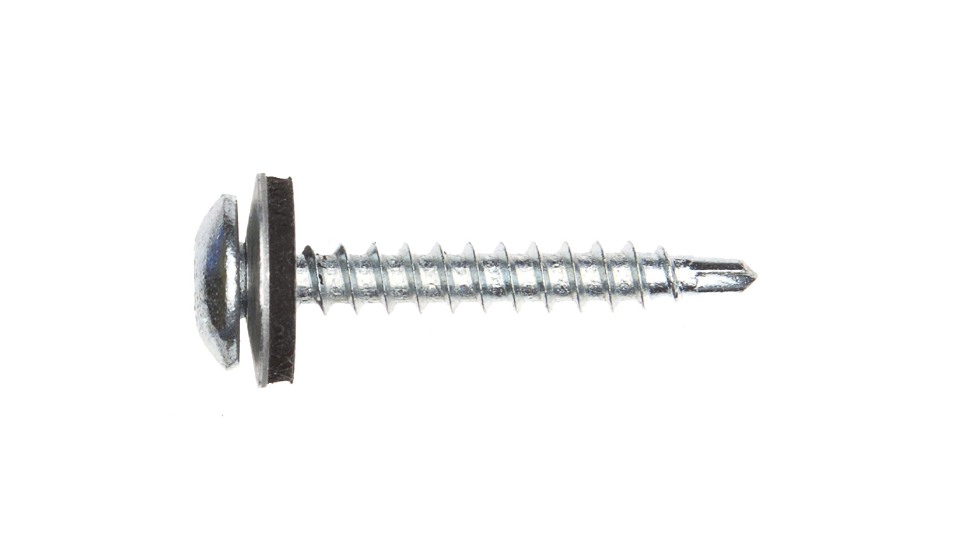 Byggplåtskruv för infästning av plåt till träunderlag. Ledad tätningsbricka med EPDM-gummi. Kullrig skalle med Torxspår T25, bits inkluderat i paketen.