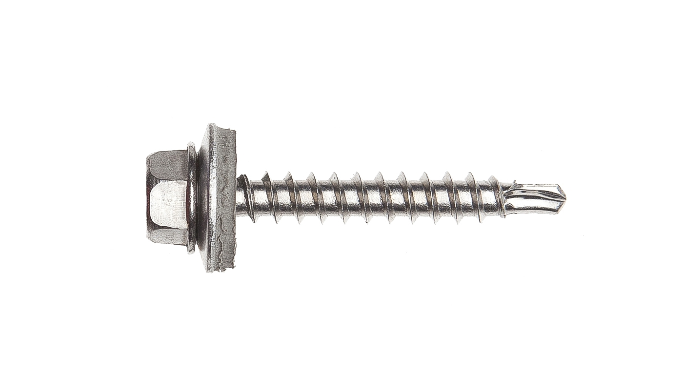 Rostfri byggplåtskruv i Marutex kvalitet för infästning av plåt till träunderlag. Ledad tätningsbricka med EPDM-gummi. Där högre utdragsvärde erfodras.