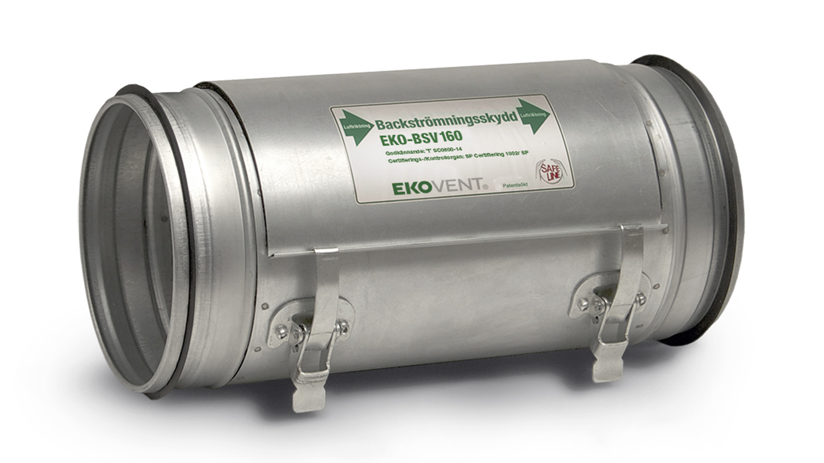 Backströmningsskydd EKOBSV är ett självverkande brandskydd avsett att användas i ventilationssystem i bostäder, hotell och servicelägenheter för att förhindra brandgasspridning mellan olika brandceller i ventilationssystemet. Storlekar Ø 100 – Ø 200 mm och tillverkas av förzinkad stålplåt.