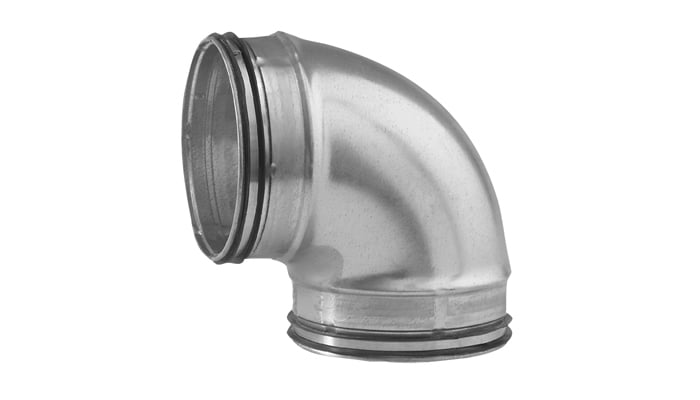 BKU är en 90° extra kort cirkulär böj. Tack vare sin minimala bygglängd är den avsedd för installationer där utrymmet är begränsat och en kompakt lösning är nödvändig.
