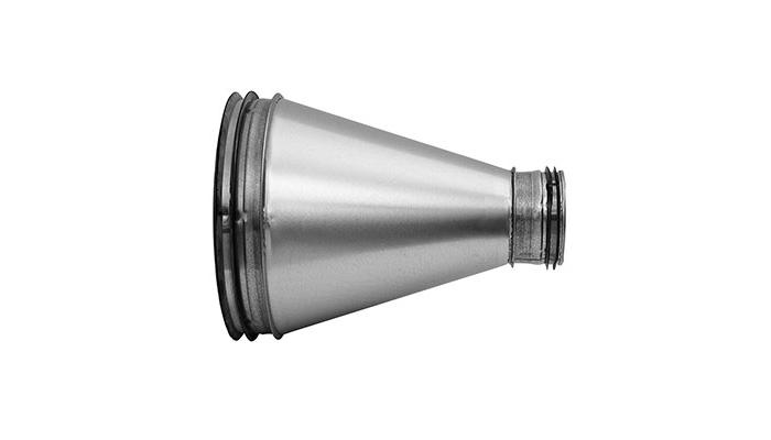 RCLU är en lång, centrisk reduktion för cirkulära ventilationskanaler, utförd med ca18° reduceringsvinkel