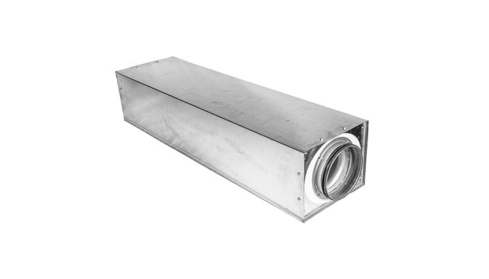 Dämpningsmaterial är mineralull. LRCFU är tillverkad av starkt rektangulärt ytterhölje med cirkulära anslutningar. Isoleringen inuti