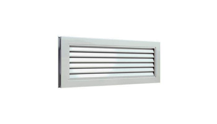 AT är ett överluftsgaller tillverkat i aluminium för installation i dörrar och väggar.