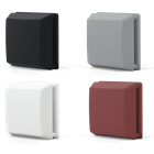Monteringen är smidig tack vare snäppfäste som passar direkt mot Fresh:s stosar Ø98/102 mm, Ø81/85 mm samt Ø95 mm. Tyfon fästs med fyra skruvar som håller både kåpan och väggplattan på plats, vilket ger en mycket stabil och säker installation. Fyra medföljande pluggar täcker skruvhålen för ett snyggt slutresultat. Tyfonkåpan kan även användas på Fresh standardgaller #150. Enkel lösning om man vill förbättra väderskyddet.