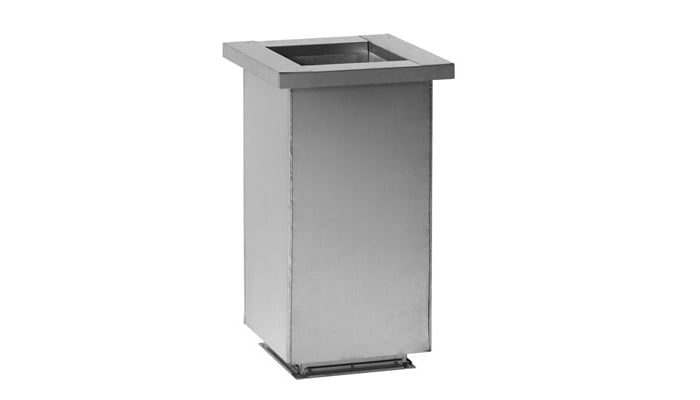 Övre anslutning i storlek 100 – 315 passar mot t ex takhuv HN.